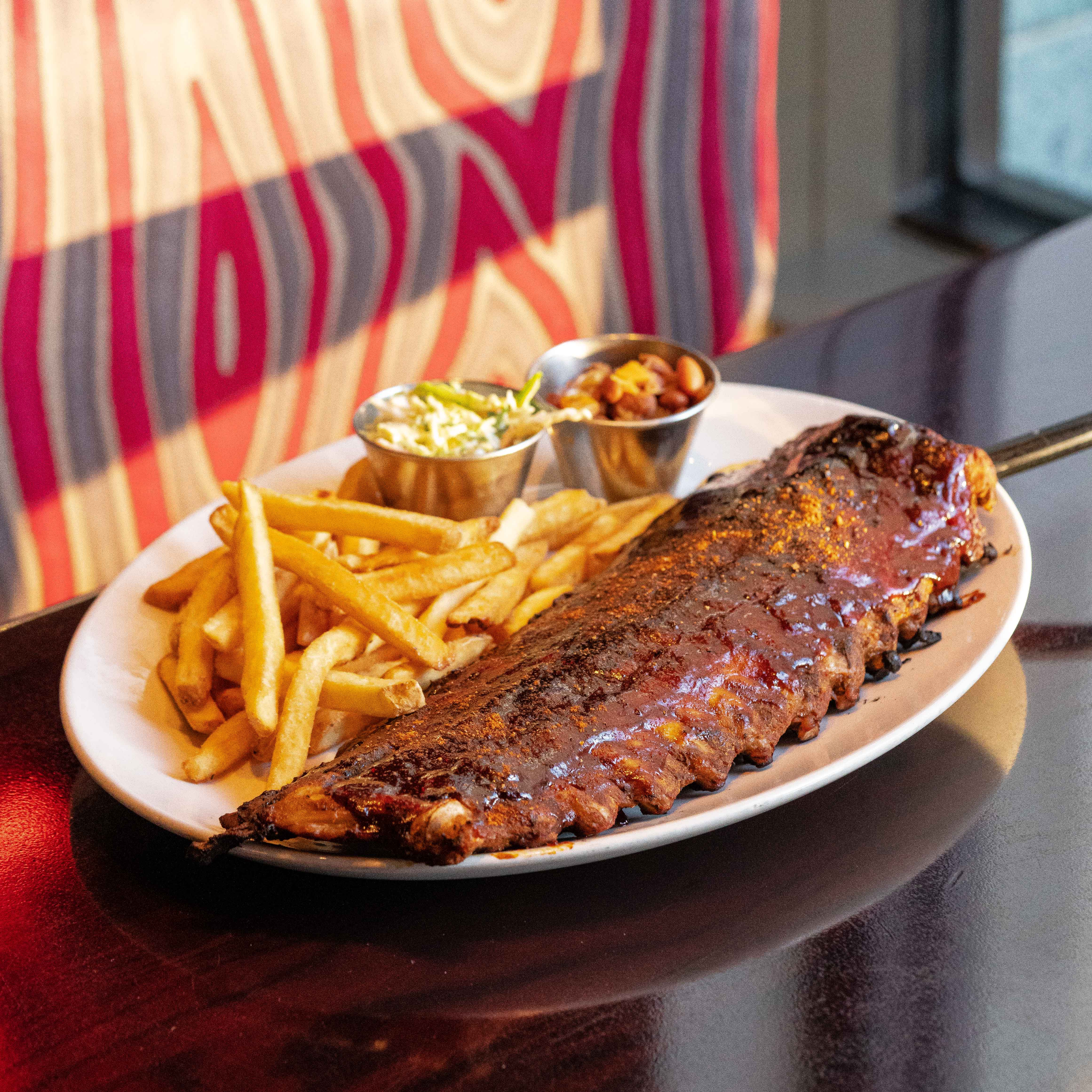 My partner went for the Baby Back Ribs. This again was a huge portion with a very tasty glazed barbecue sauce but it was the seasoning that turned this dish from ordinary to extra-ordinary. The seasoned fries, ranch style beans and coleslaw were the perfect accompaniment.